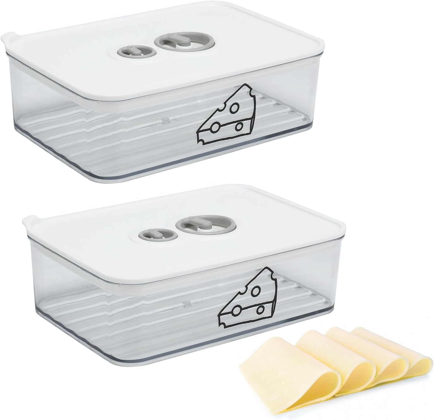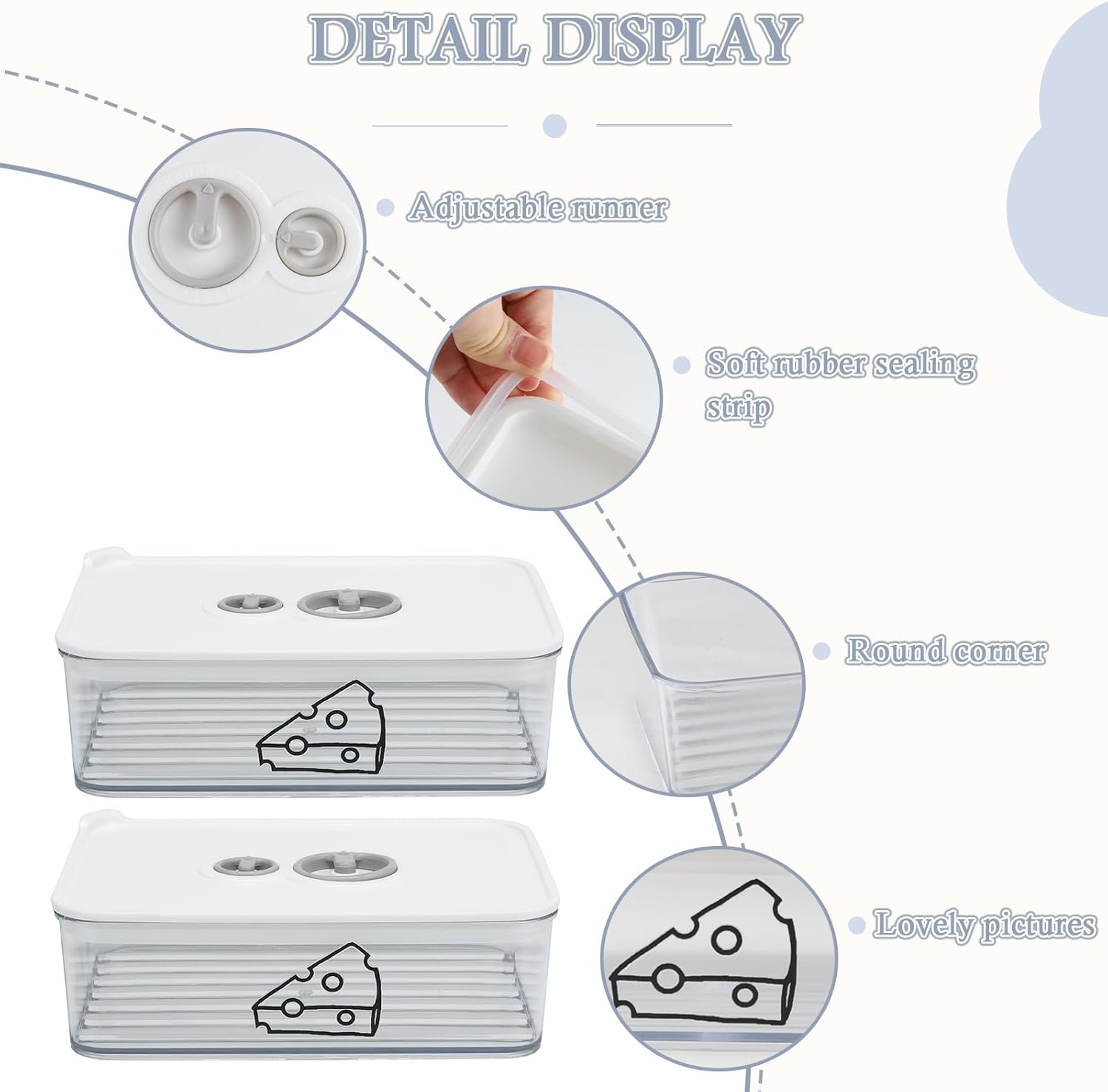 2-Pack Cheese Storage Container 1250ml Food-Grade Airtight Refrigerator Organizer