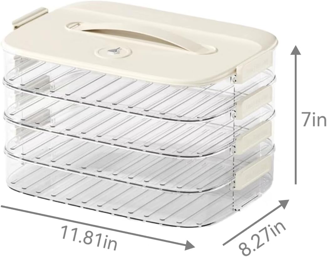 Features 4 independent stackable trays, designed for high-capacity food storage.