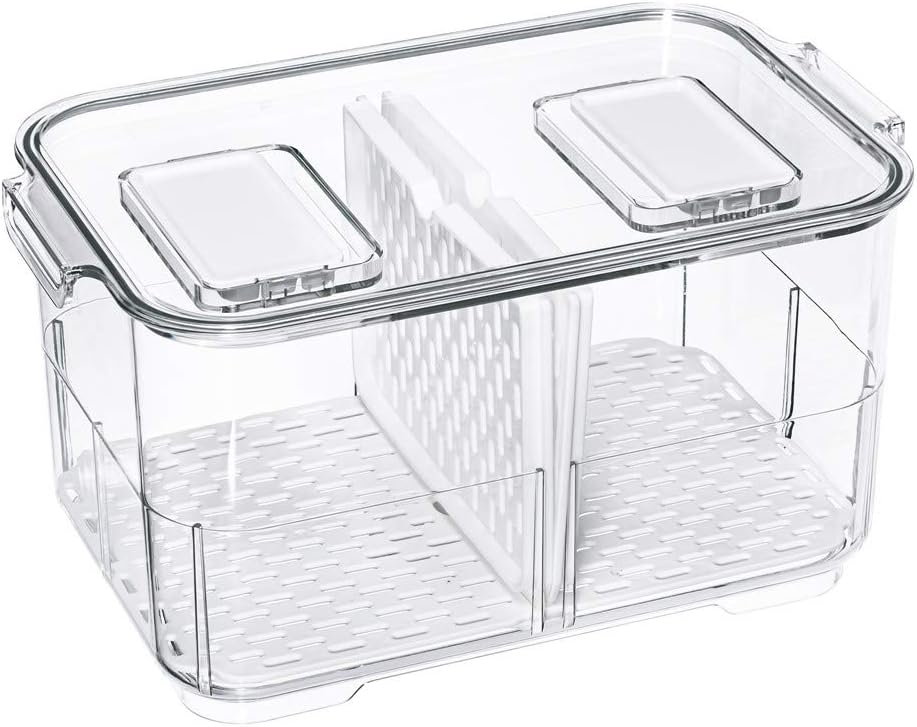 Clear Refrigerator Storage Bin with Divider – Food Storage Container for Fridge Organization