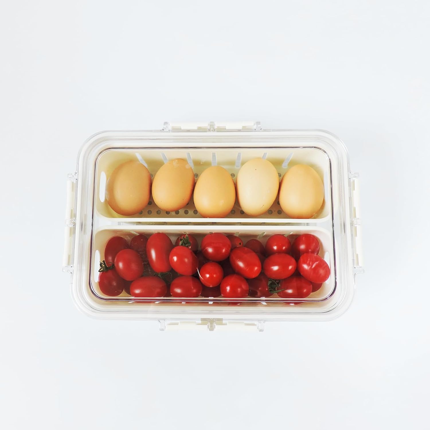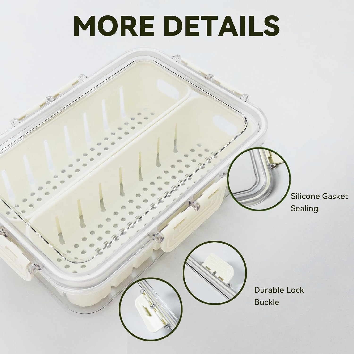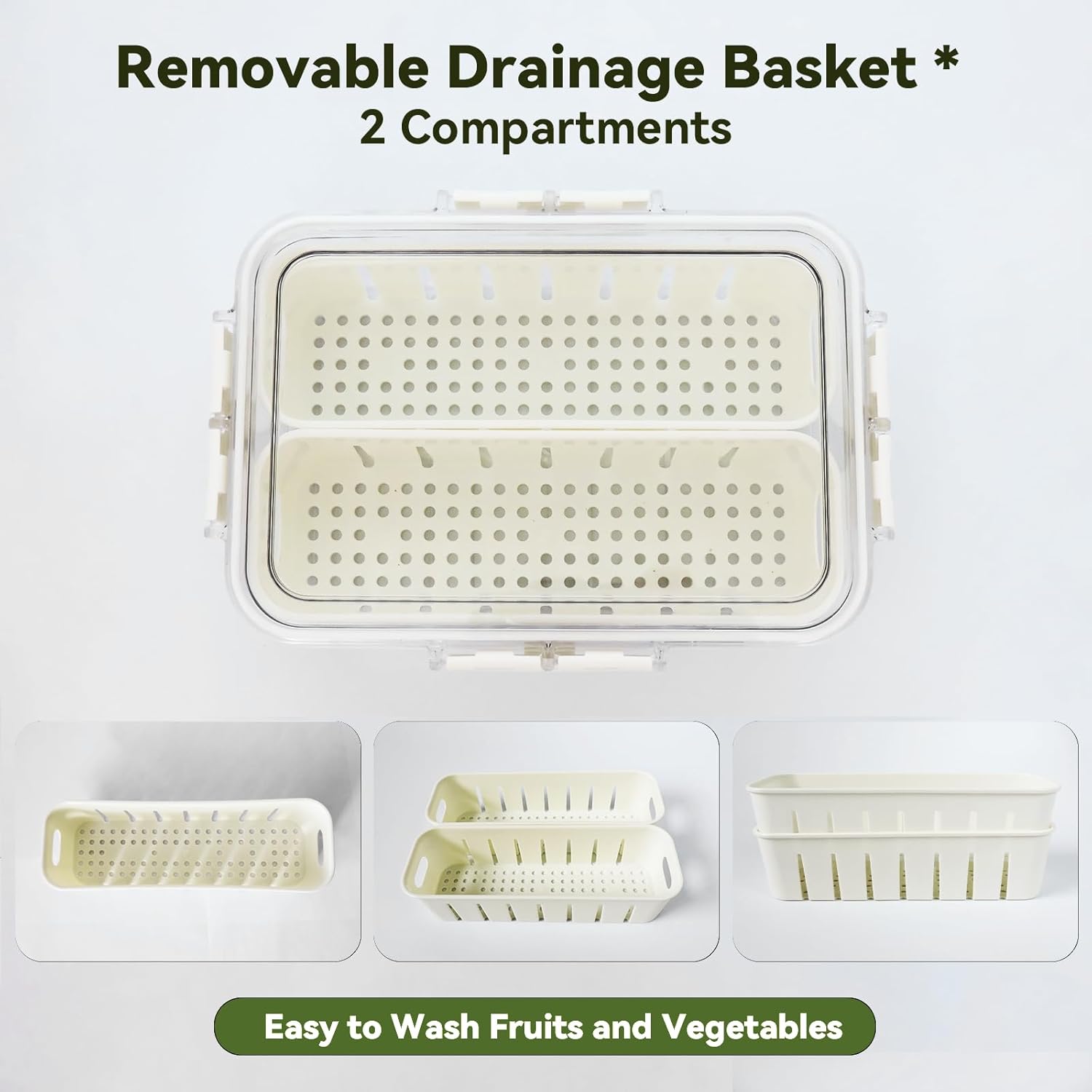 Equipped with a built-in drain basket featuring evenly spaced holes, this box effectively separates food from excess water, keeping produce dry and fresh. Perfect for washed strawberries, grapes, lettuce, cucumbers, and more. The basket can be removed and used independently for sorting or storage.