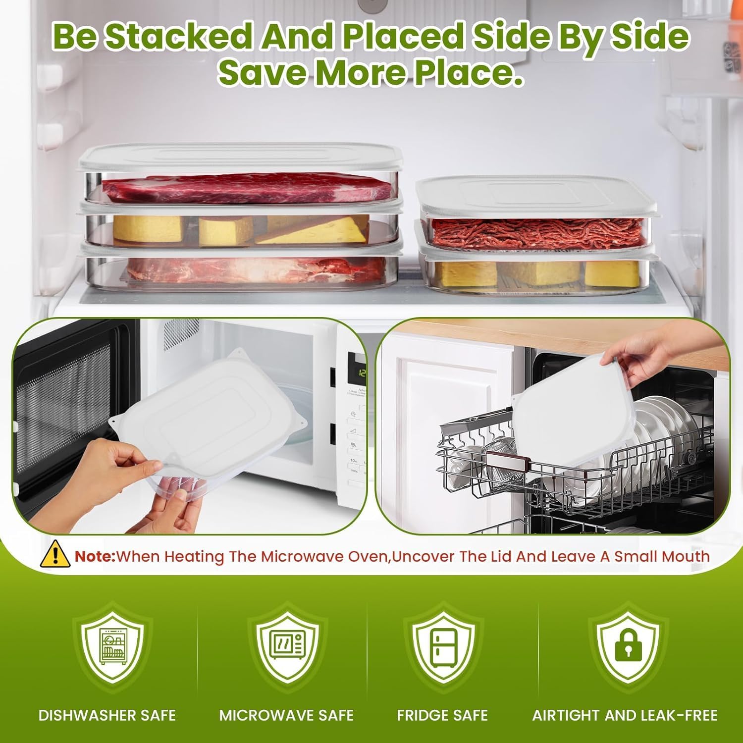 Meat Storage: Keep bacon, ham, chicken breast, or cooked meat slices fresh and separated.